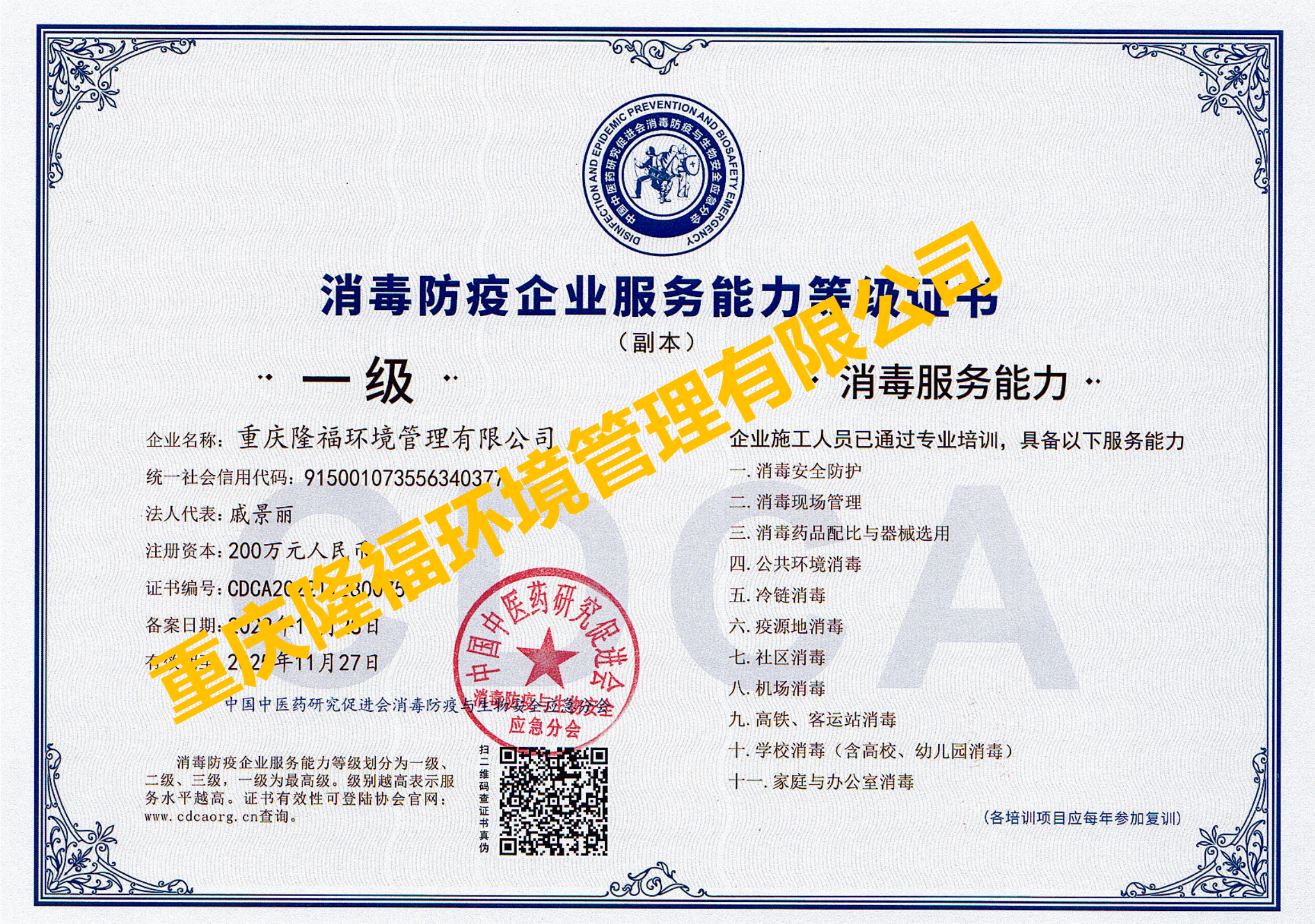• 2023-12-25行穩至遠,我司榮獲全國首家“白蟻防治服務單位高級專業服務能力資質”